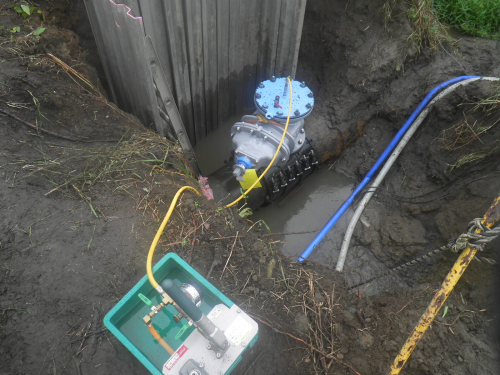 掘削口内に水が湧いてまた雨も降っていたので足場が悪い状況でした。